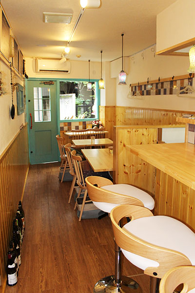 - カウンターを含め約12席のこじんまりした客席ですが、決して窮屈にならないよう、カウンター、客席の配置に配慮しました。